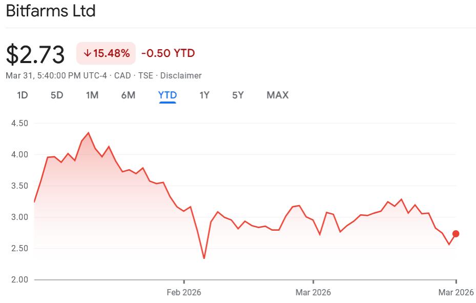 BITF’s change in share price so far in 2026. Source: Google Finance